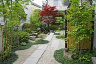 門から玄関までの通路とその周辺は、幸せの風が舞い踊る空間。門まわり、アプローチ、玄関がすべて関連した空間であり、全体のコーディネイト。素材、動線、植栽などポイントを押さえながらプラン創りをご提案致します。
